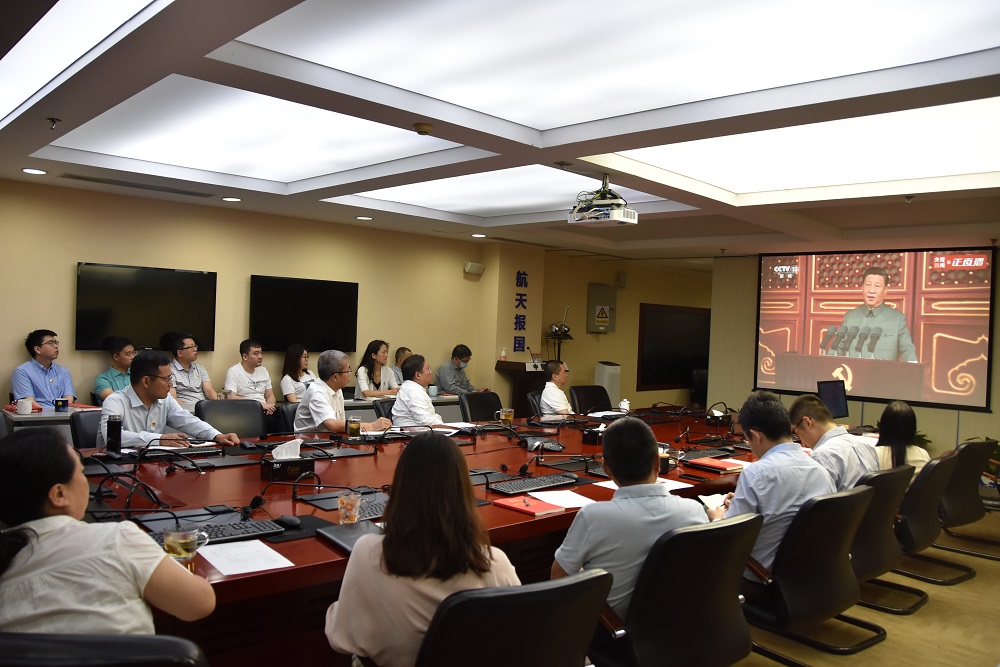 7月1日,中國衛星黨委帶領全體黨員第一時間聆聽習近平總書記在慶祝中國共產黨成立1 00 周年大會上的重要講話。